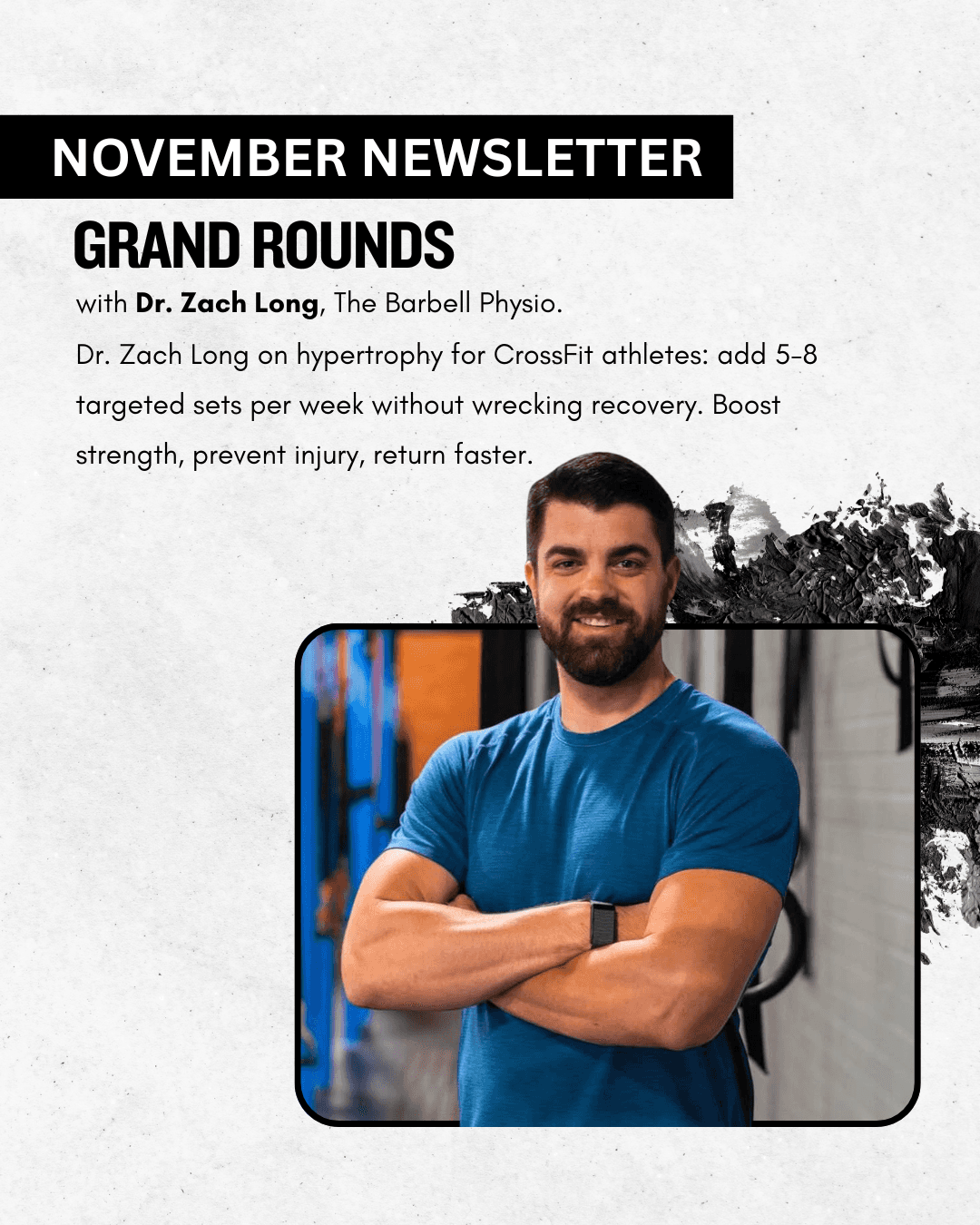 In this month’s session, Zach Long, DPT, explains when and how to plug hypertrophy into a CrossFit week to boost strength, protect against injury, and speed return to sport. He covers the big levers—mechanical tension, smart exercise selection, near-failure sets with lighter loads, and simple nutrition rules—then shows how to add 5–8 targeted sets per week without wrecking recovery. Watch the full talk below and share with your coaching team.