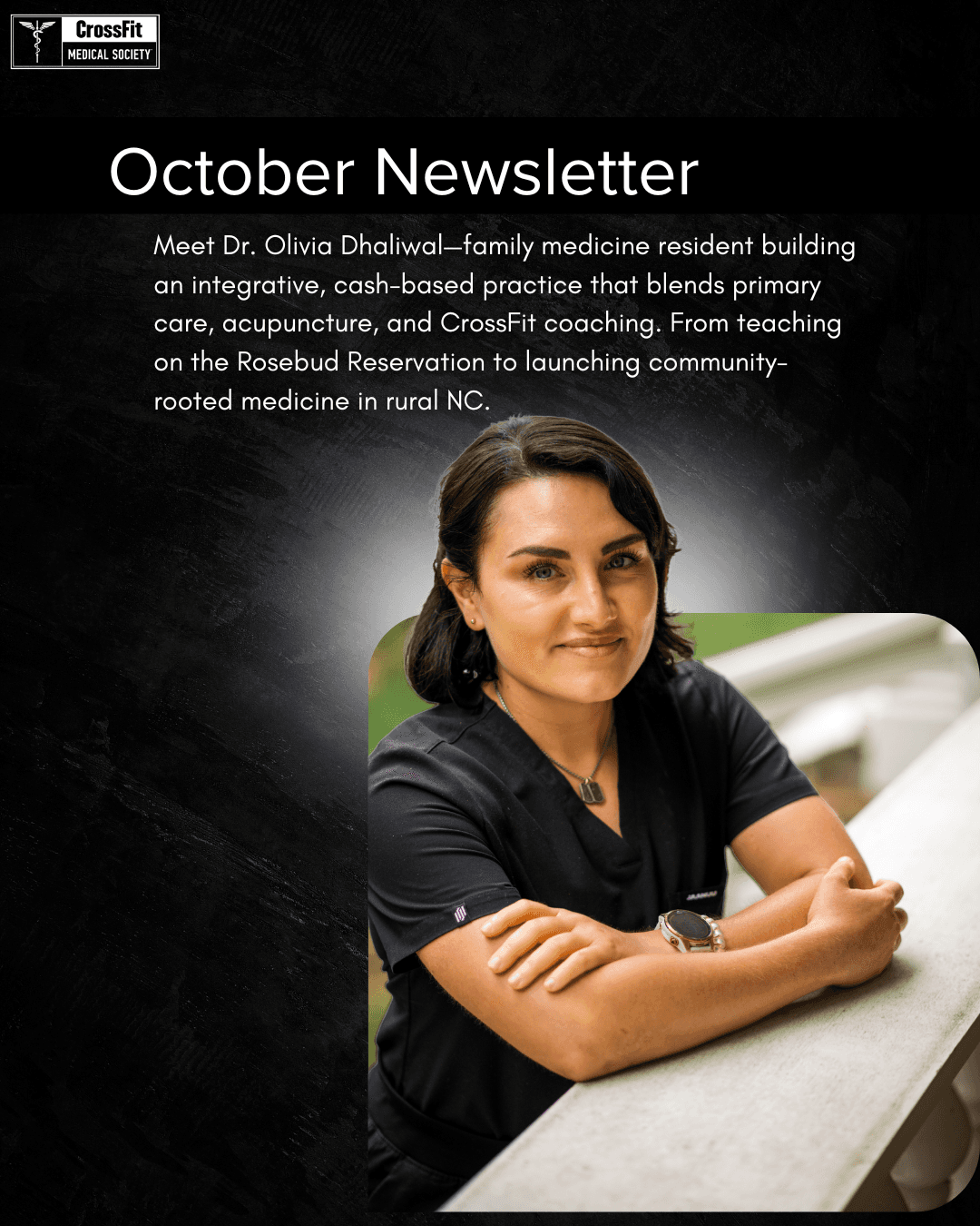 As a contributor to the CrossFit Medical Society, Olivia is documenting her journey from residency toward a community-rooted, coach-informed model of care. Expect updates on building a practice, blending acupuncture with primary care, and practical templates other clinicians can use to step outside insurance constraints. Her north star is simple and ambitious: help people move, eat, sleep, and connect in ways that make disease less likely—and make freedom possible.
