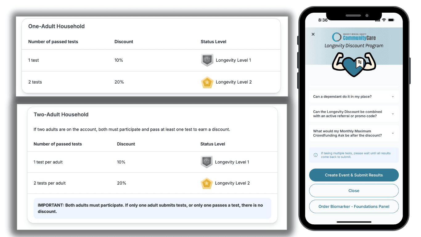 Here’s how it works: members who submit one or more key health metrics—fasting insulin, high-sensitivity CRP, or a DEXA scan showing visceral fat—can earn up to 20% off their monthly contribution throughout 2026.